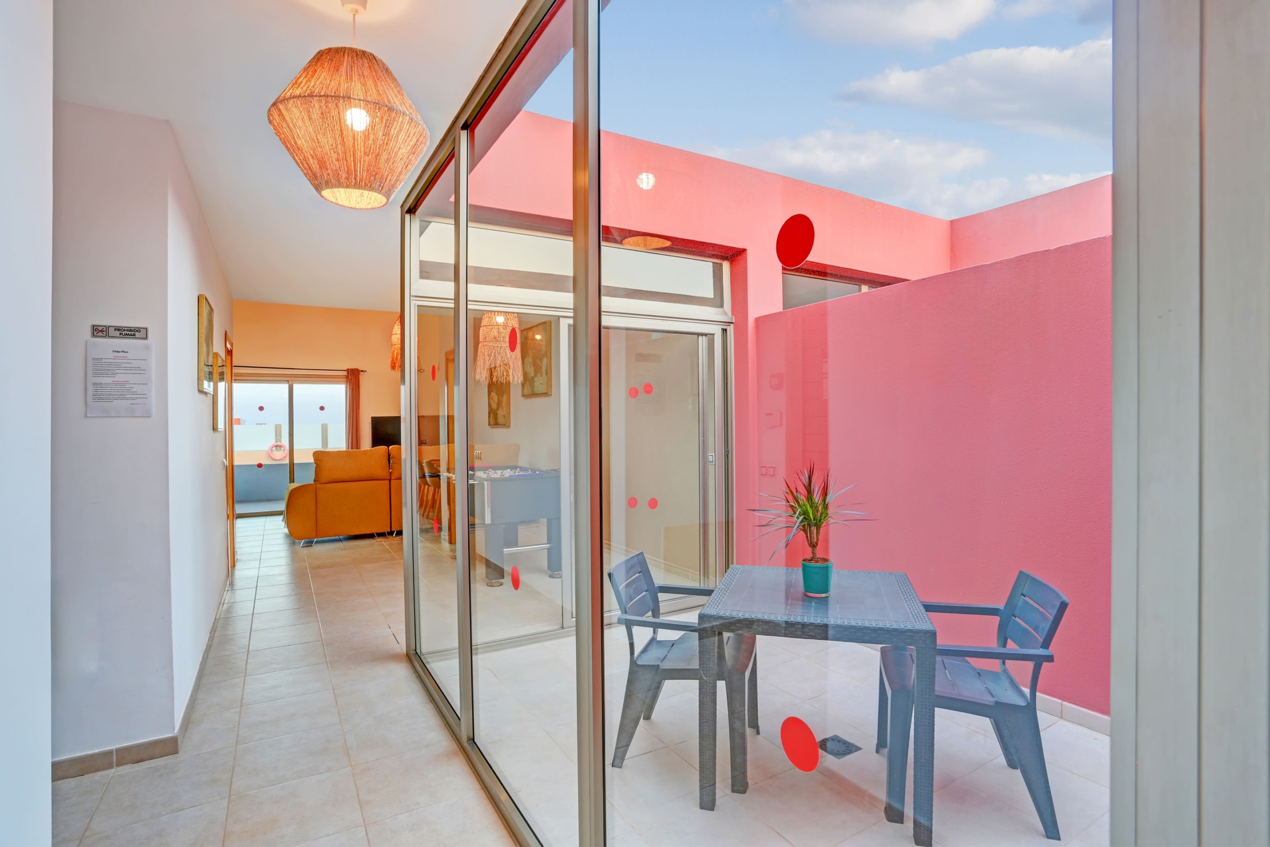 Esta villa recién estrenada se encuentra a 1,5 km del Centro Comercial El Atlántico y a 2 km encontrarás el Centro Comercial El Castillo: restaurantes con cocina nacional e internacional, bares, discotecas, tiendas y varios deportes acuáticos como las motos de aqua o el Windsurf, entre otros. La decoración y los ambientes están muy cuidados.
